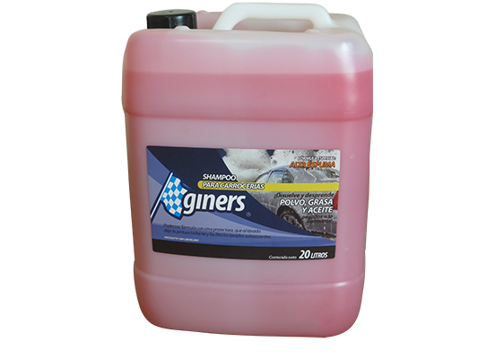 El Shampoo GINERS para carrocerías está formulado con agentes espumantes y tensoactivos altamente eficientes que limpia exteriores de vehículos y todo tipo de carrocerías. El Shampoo GINERS para carrocerías elimina polvo, grasa, aceite y suciedad ambiental, logrando una limpieza profunda; contiene una cera protectora, que al lavado deja la pintura brillante y facilita los lavados subsecuentes.